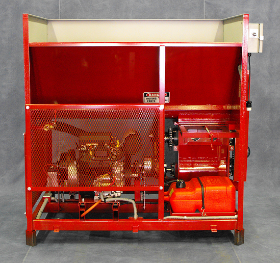 POWER: 22HP cylinder Honda gasoline engine complete with electric start, 20 amp alternator, spin-on oil filter, pressurized lubrication, muffler exhaust system, stainless steel flexible tubing, 6 gallon tank.