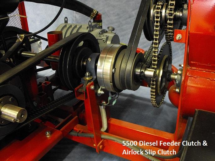 DOUBLE CLUTCHES: Electro-magnetic double clutches allow air and material flow to be controlled individually by remote control. Expected life 10 to 15 years.