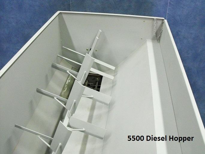 HOPPER: 57-cubic foot capacity, made with heavy gauge metal with heavy-duty reinforced feeder paddles for uniform material feed.