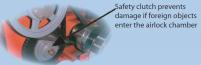 SAFETY CLUTCH: Safety clutch will slip if any foreign material jams the machine.