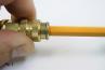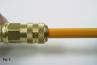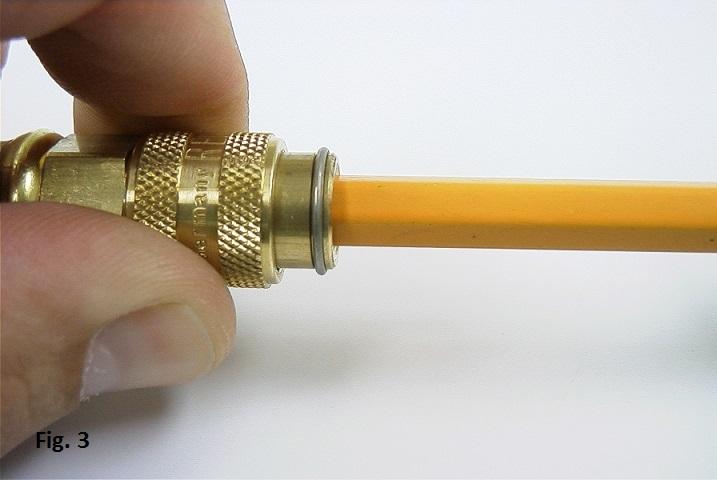 - Take a pencil and depress the plunger inside the fitting about 1/4" and hold it there. (Fig. 2)