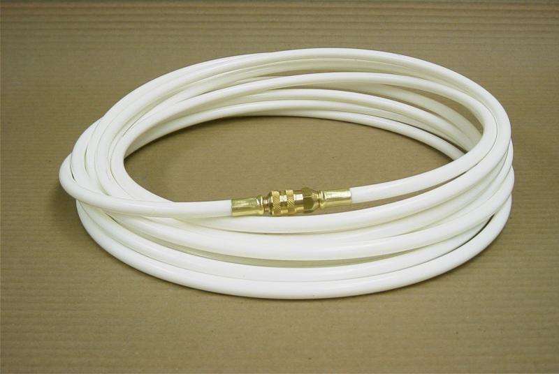 The Snake has scorpion quick disconnect on ends. Used for smaller ductwork such as cold air returns, supply vents and dryer vents. Made of 1/4" I.D. tubing which is the same plastic as our medium flexible rods (SS-1A). Stiff enough to push forward blowing balls down the return but flexible enough to go around elbows. Can connect to the rods.