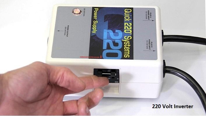 220 Volt Inverter – Plug the Quick 220 voltage converter into 110/120V outlet. Connect 220/240V equipment to the Quick 220 outlets and you now have 220/240 volt power.